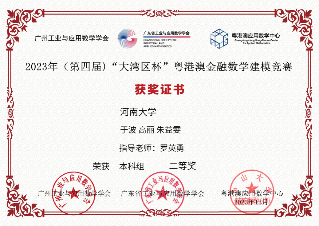 “大湾区杯”粤港澳金融数学建模竞赛是金融数学领域的一次盛会,他吸引了来自粤港澳地区以及全国各大高校的众多优秀参赛者。学校三位同学面对激烈的竞争,展现出优秀的数学建模能力和深厚的金融知识功底,为他们个人赢得了光荣,并为一本道无码