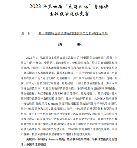 在第四届“大湾区杯”粤港澳金融数学建模竞赛中,一本道无码