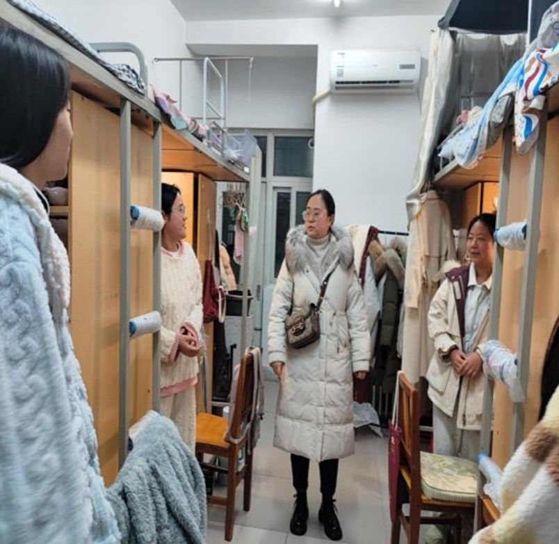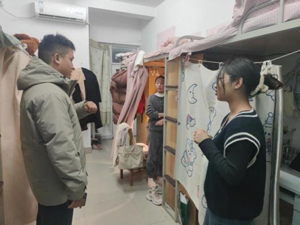 走访过程中,辅导员们对学生宿舍的寝室卫生和安全隐患进行了排查,并提醒同学们注意用电、用火安全,预防火灾等意外事故的发生,在寝室严禁使用违规电器,希望每位寝室长能够负起责任。同时,辅导员们督促同学们要维持公寓的卫生整洁,爱护寝室环境,妥善保管贵重物品,共同营造良好的寝室环境。他们与同学们沟通交流,深入了解学生们的生活情况,并提醒同学们在宿舍要注意保持室内空气流通,多穿衣服、多吃热食、多喝热水,外出注意防寒保暖,做好防护措施。