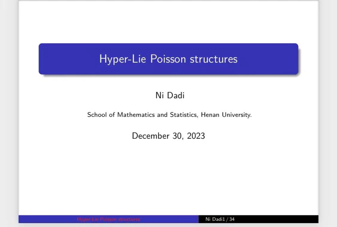 倪大地主要介绍了如何从辛几何的角度研究hyperkahler流形,利用hyper Lie Poisson结构,通过半单李代数构造出具体的hyperkahler流形,最后,给出一个具体的实例su(2)。