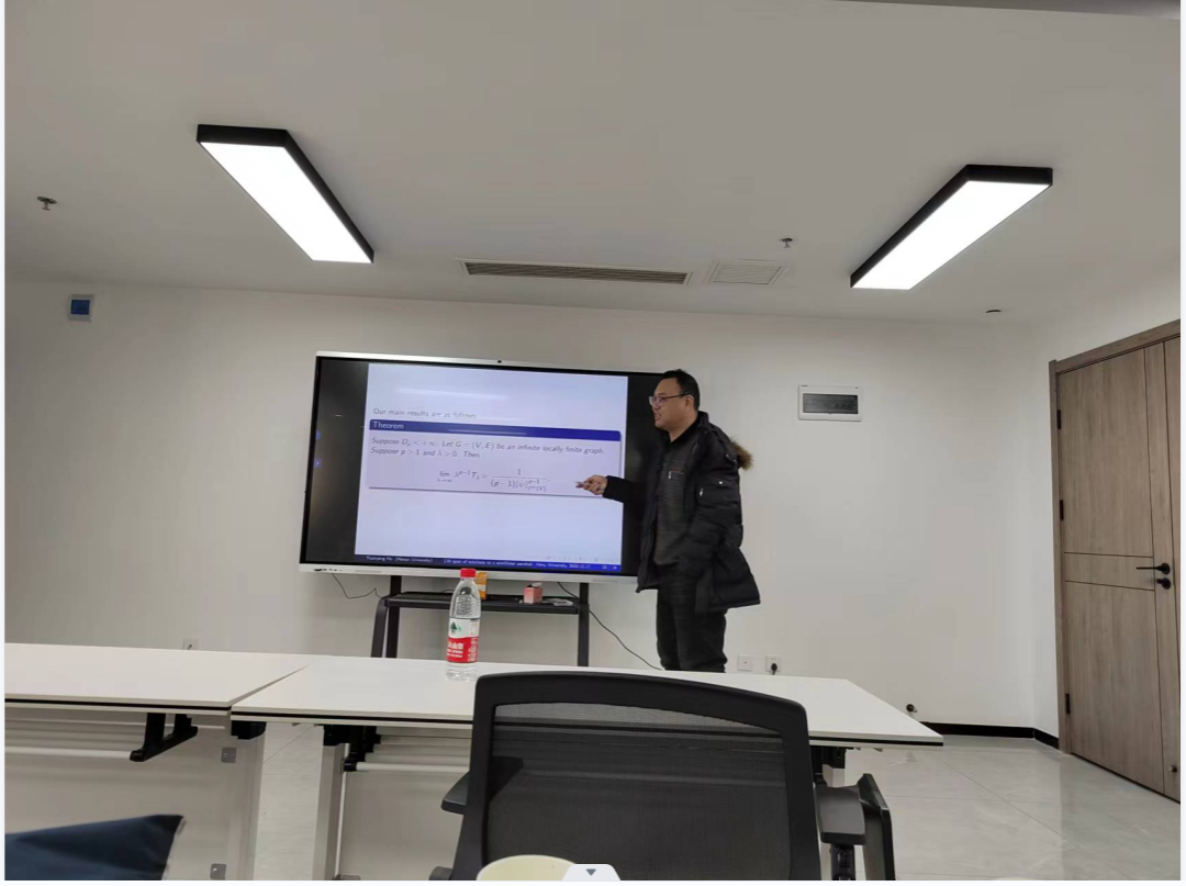 胡远洋介绍了研究无限局部有限图上的一个Fujita型半线性热方程,发展了无限图上的Kaplan主特征值判别法,离散的Phragmén-Lindelöf原理和上下解方法,使用这些方法,建立了该方程解的生命跨度的估计,并分析了初值对解爆破时间的影响。