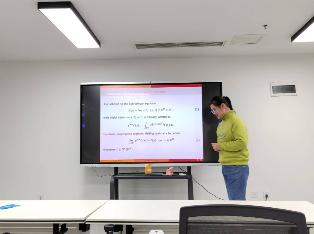 王会菊获得了薛定谔算子沿离散时间序列点态收敛的最优指标,通过构造反例彻底解决了P. Sjölin提出的关于薛定谔算子沿离散时间序列点态收敛的公开问题。该工作由报告人与西北工业大学李文娟教授,中国科学院大学燕敦验教授合作完成,发表在Proc. Royal Soc. Edinburgh A。