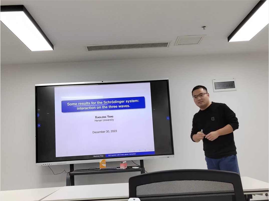 杨小龙的报告主要利用变分法研究了一类三波薛定谔方程组在能量次临界和能量临界情形具有一个局部极小和一个山路形式的正规化解。此外,也得到了当质量同步消失时基态解的渐近性。