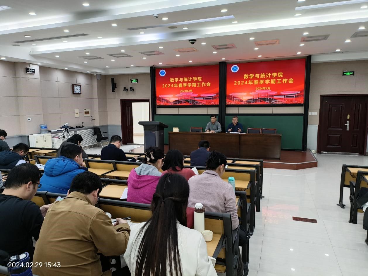 院长韩小森传达了学校召开的新学期工作会议精神,要求全体教职工要聚焦学校创新发展年主题,秉持新的理念,落实新的举措,构建新的发展格局,要坚持一切不利于发展的都要摒弃,一切有利于发展的都要继承,一切能创造未来的都要敢试。通过循序渐进、小步快跑实现七个方面的根本性转变。随后,结合武汉大学校长张平文院士《关于数学学科高层次人才培养的思考》的署名文章,对学院的学生培养、教学改革、学科发展、师资队伍建设等关键领域进行了深入分析,鼓励全院教师在学科新百年的开局之年,立足本职工作,主动谋划、开拓创新、攻坚克难,促进学院各项工作的整体提升。