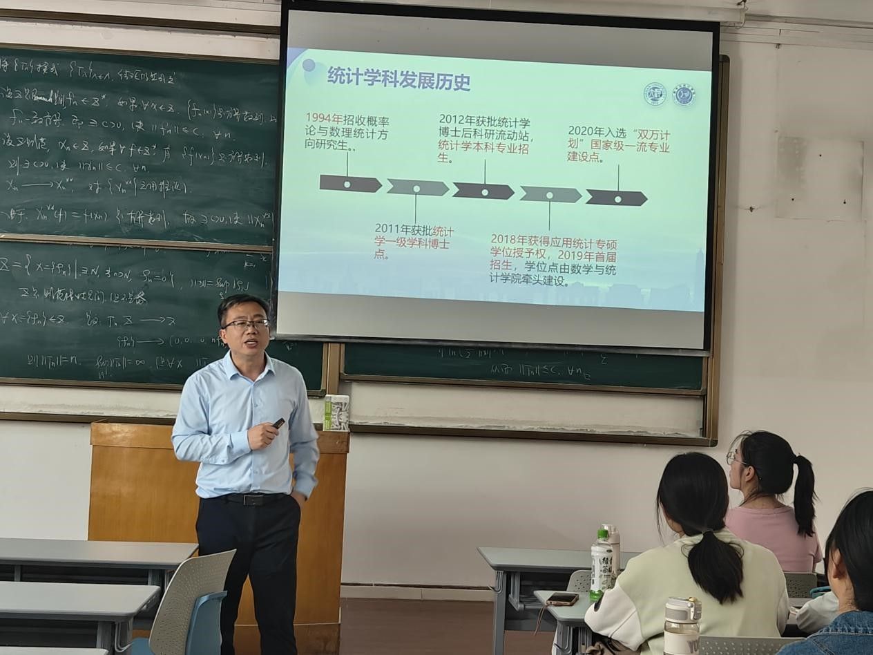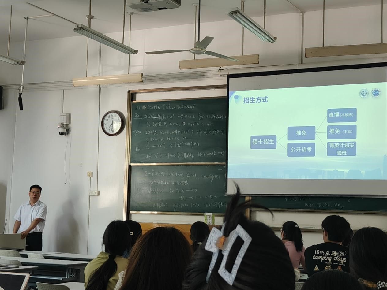 政策、各专业研究方向及优势,5月9日下午,由统计专业解俊山、郑晨老师;数学专业肖运海、陈士超、葛志昊、杨晓慧、刘根强、王沛、李鸿军、刘忠原老师和学科教学张玉环老师分别在综合教学楼2103、2201教室召开研究生专业宣讲会,为学院2021级考研学子提供全面的经验指导和信息支持。
