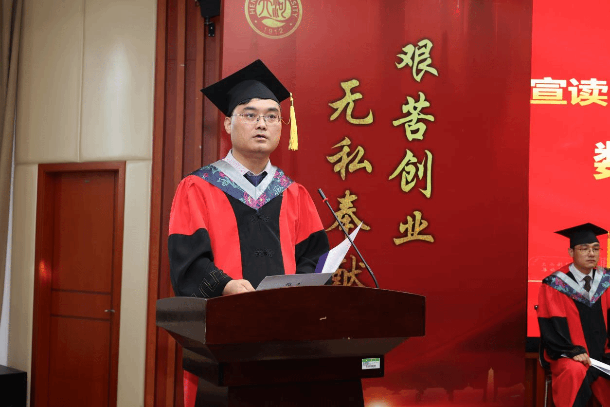 党委书记曹志伟,院长、学位委员会主席韩小森,副院长、学位委员会副主席解俊山,副院长、学位委员会成员唐恒才、王中华,学位委员会成员王沛、郑晨、张嘉防参加典礼。学院领导班子成员、教师代表、辅导员代表及2024届全体毕业生参加了典礼。典礼由学院副院长杨一平主持。