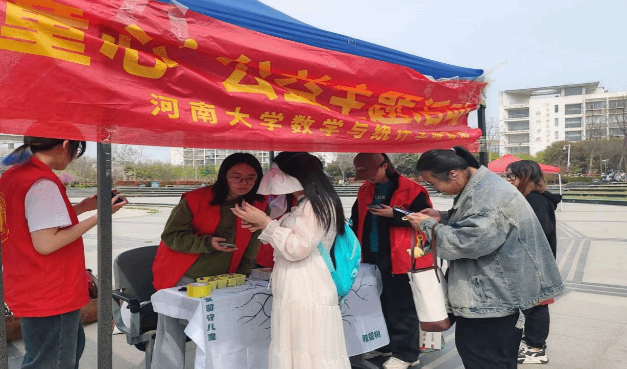 青年志愿者协会举办了以“温暖同行,情暖童心”为主题的公益活动。活动地点位于金明校区下沉广场,共有37名志愿者组织开展,500余名河大学子参加。