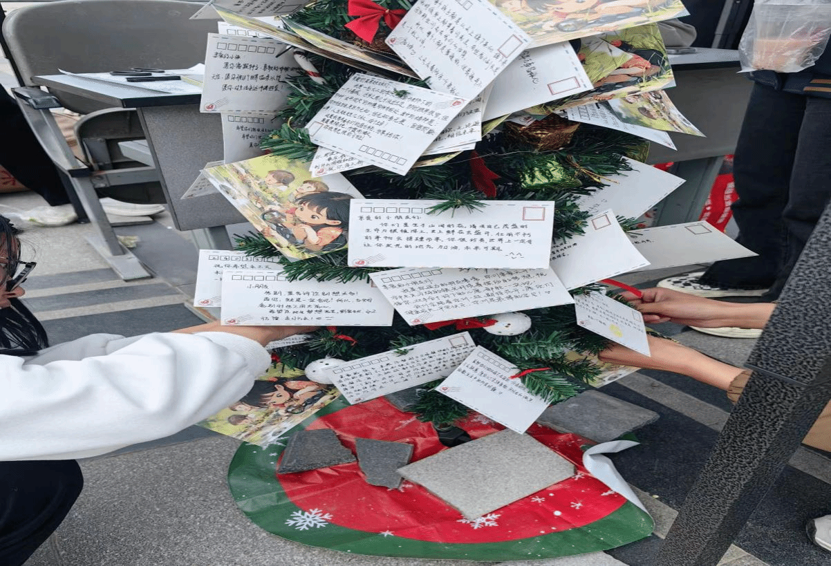 第二阶段,同学们通过线上投票的形式,积极转发朋友圈等各个社交平台,让更多人了解到我们的活动,通过送爱心的形式,用实际行动表达对留守儿童群体的关心,贡献属于自己的一份力。活动结束后,挂满明信片的圣诞树,按满手印的爱心树等会寄给留守儿童。