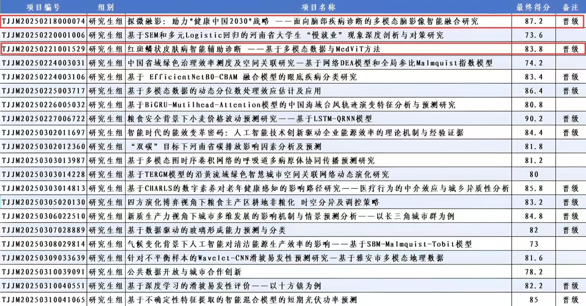 两支研究生团队凭借扎实的学术功底与创新应用能力,双双获奖。《助力“健康中国2030”战略——面向脑部疾病诊断的多模态脑影像智能融合研究》表现突出,在全国总决赛中荣获河南省唯一的国家二等奖;《红斑鳞状皮肤病智能辅助诊断——基于多模态数据与MedViT方法》荣获国家三等奖。