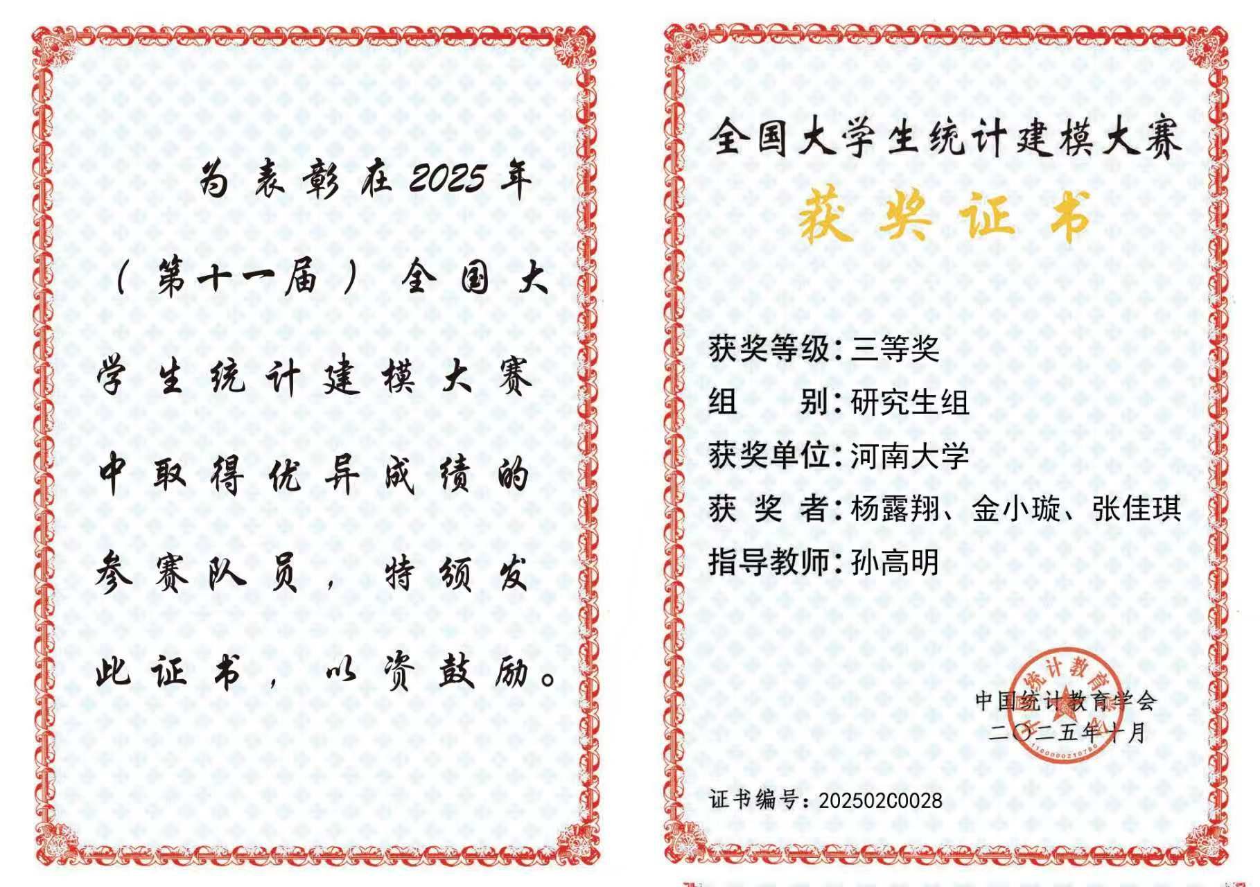 全国大学生统计建模大赛是由中国统计教育学会主办的全国性高水平学科竞赛,旨在激励大学生运用统计方法和技术解决实际问题,培养其数据处理、模型构建和创新分析能力,吸引了包括众多“双一流”高校在内的全国数百支队伍参加。