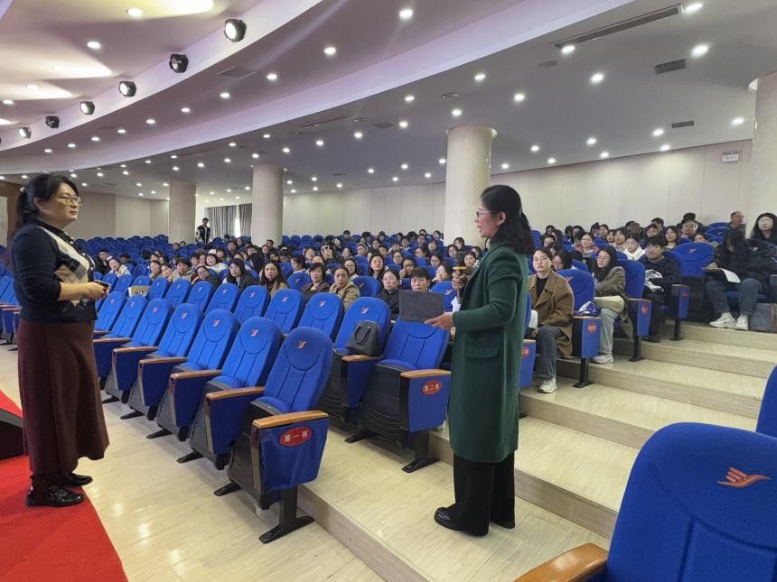 郭含老师作了题为《从“听懂”到“会道”——全等三角形证明的思维破局》的专题报告。报告直击学生学习的痛点,系统分析了学生在全等三角形证明中存在的“识图能力弱”、“判定依据模糊”、“思路断层”三大“堵点”问题,并提出了行之有效的“破局”策略。报告既有理论高度,又极具实操性,为参与师生提供了宝贵的教学借鉴。
