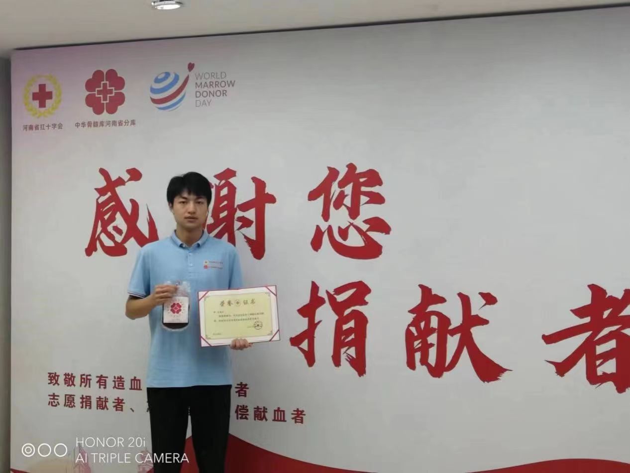 研究生李卓成功在郑州捐献了造血干细胞,为一位血液病患者送去重生的希望。