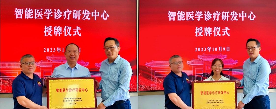 近期组织了共建研发中心系列活动,分别与河南宝稻种业科技有限公司共建农作物种质资源表型数据智能鉴定研发中心、与北京医卫华康科技有限公司共建智能医学诊疗研发中心。